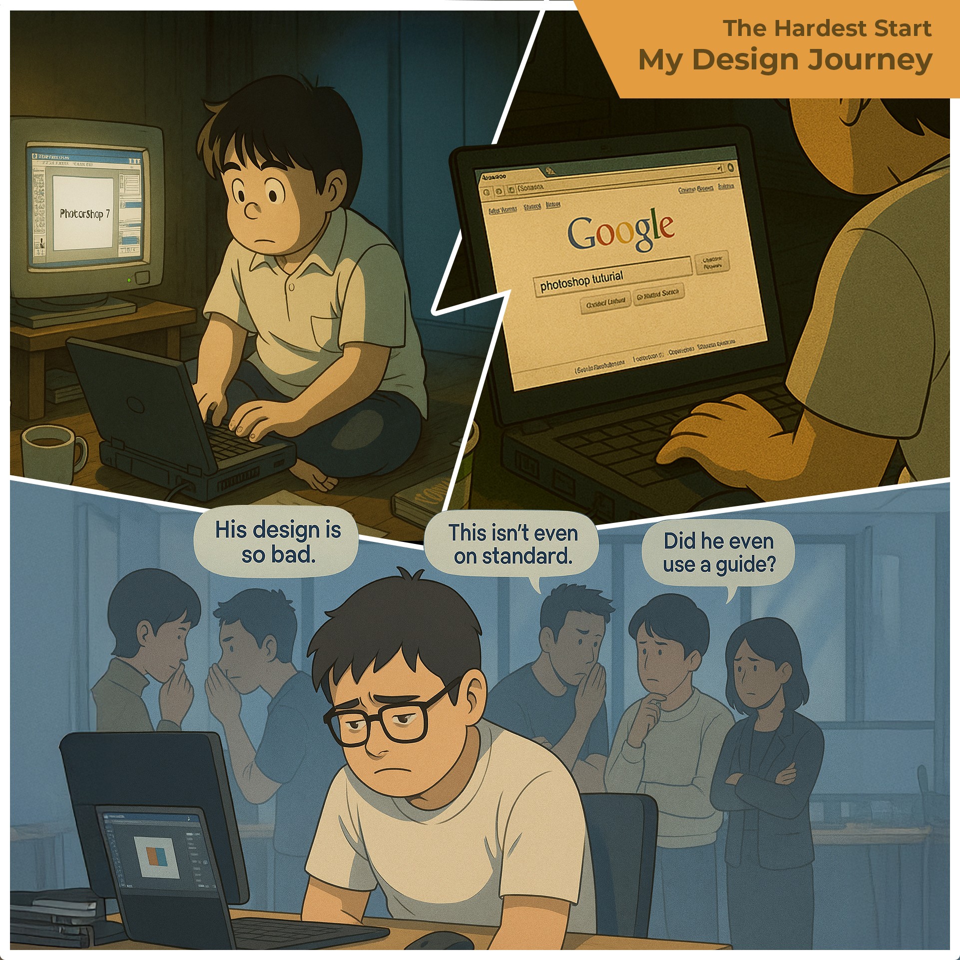 After each exhausting day, I would sit in front of an old, laggy laptop. I wiped off the dust, opened Photoshop 7 and Macromedia Flash, and started teaching myself design. I had no formal training. No design mentor. Just internet tutorials, secondhand books, and an unshakable curiosity.Everyone else was sleeping. But I stayed up, quietly building the foundation of the life I wanted.