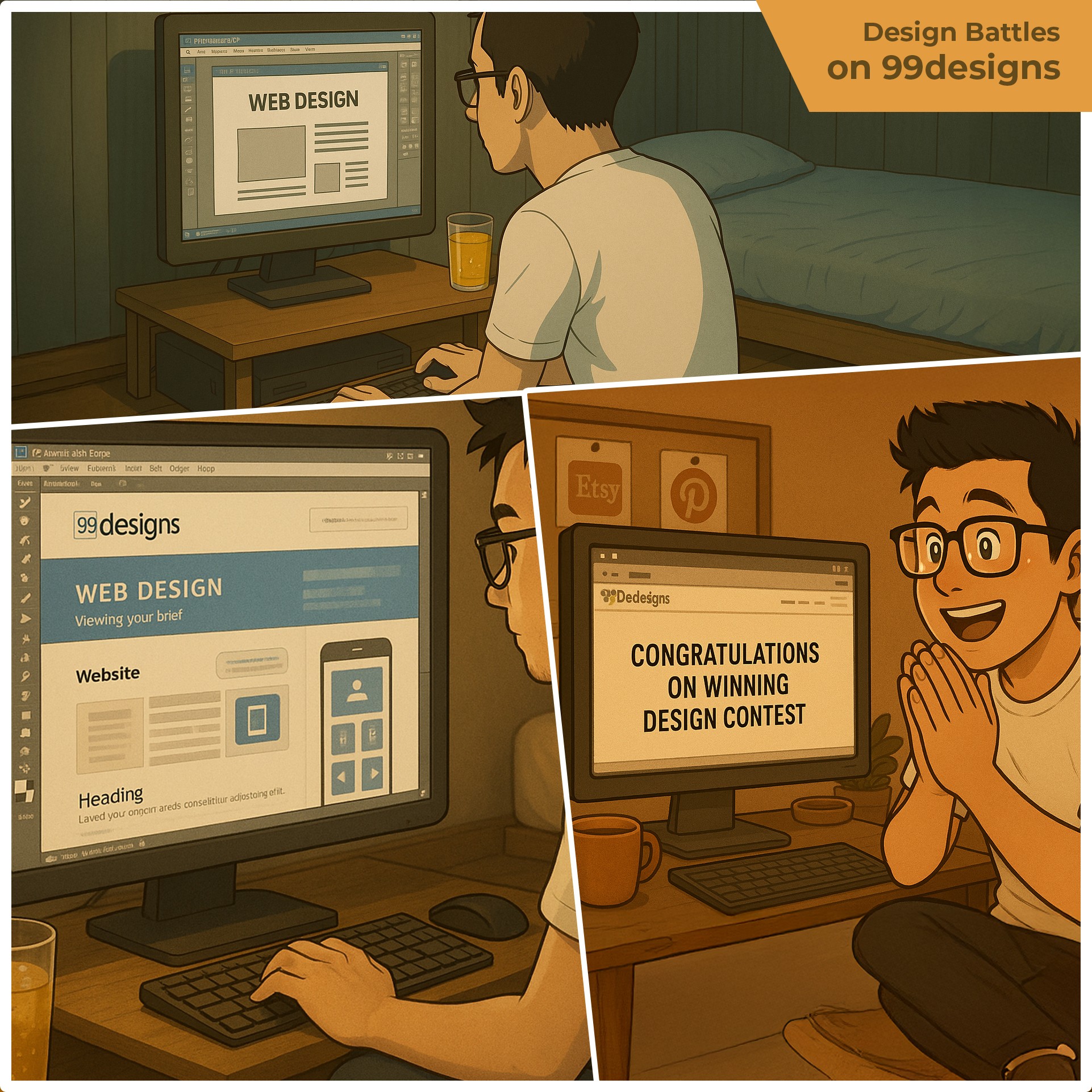 I joined design contests on 99designs — not 10, not 20, but 120 of them. I lost 119 times. Each rejection taught me something new. Each failure sharpened my skills.
